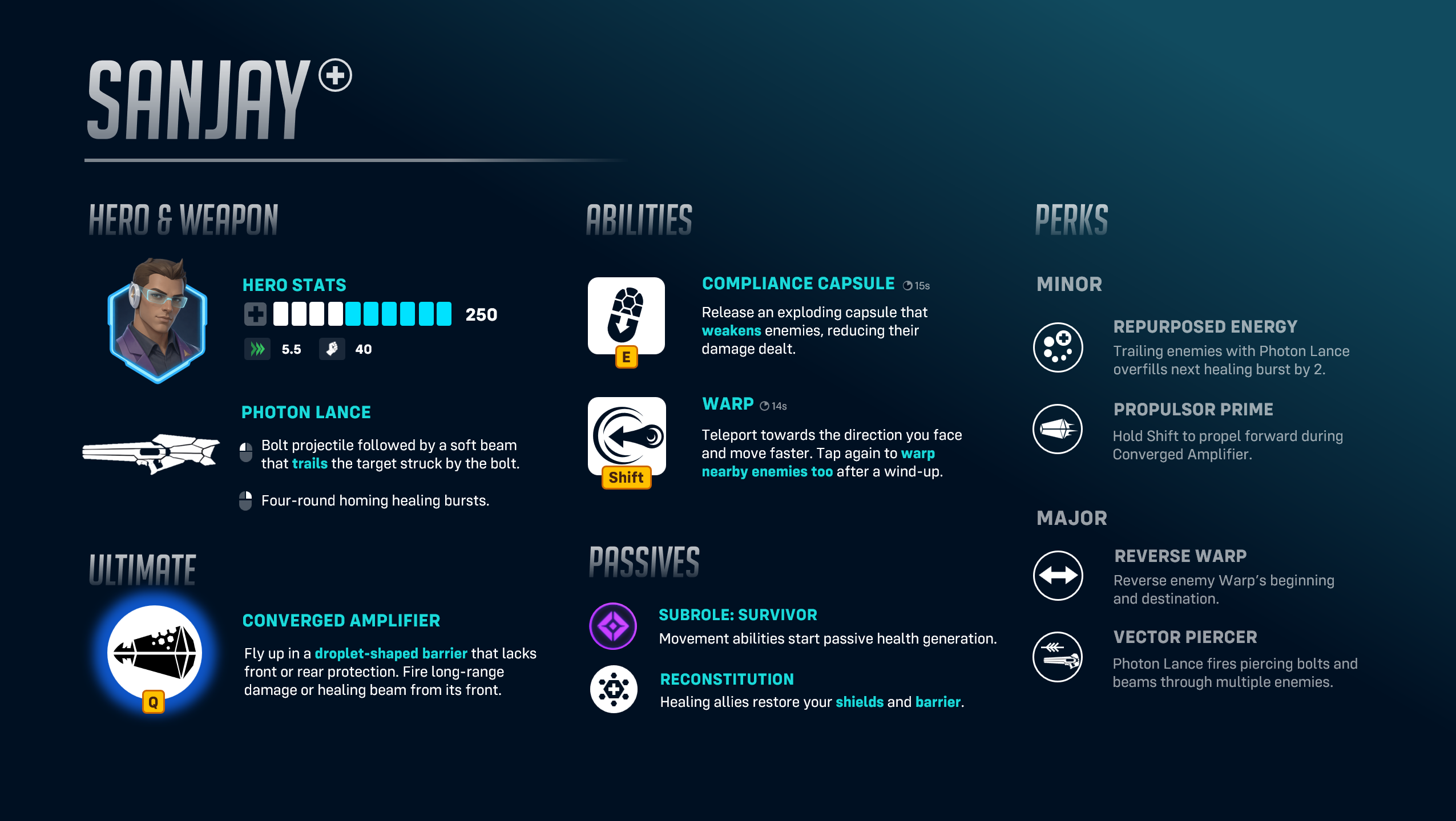 This is not always optimal, as Sanjay does less healing than damage during Converged Amplifier. - The ability ends when the barrier breaks.